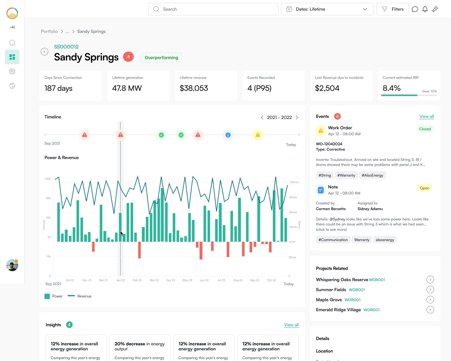 Our platform brings together siloed contextual data from performance to alert history and weather to contractual obligations. All the data at your fingertips to help automate reporting, prioritize the right tactics that drive revenue, and reduces contractual risk.
